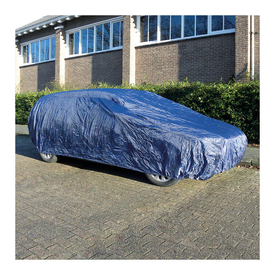The Carpoint Polyester car cover offers your car optimal protection against environmental influences. The cover provides protection against (extreme) weather conditions, such as UV radiation, rain, snow, and frost. This protection is made from 100% polyester with a water-repellent PU coating. The cover should be fitted over a dry and clean car. You can easily attach and remove it from your car. Additionally, the cover prevents your car from being damaged by dust. The polyester car cover in size large fits passenger cars up to a length of 4.48 meters.