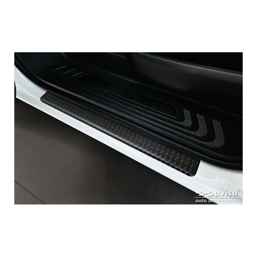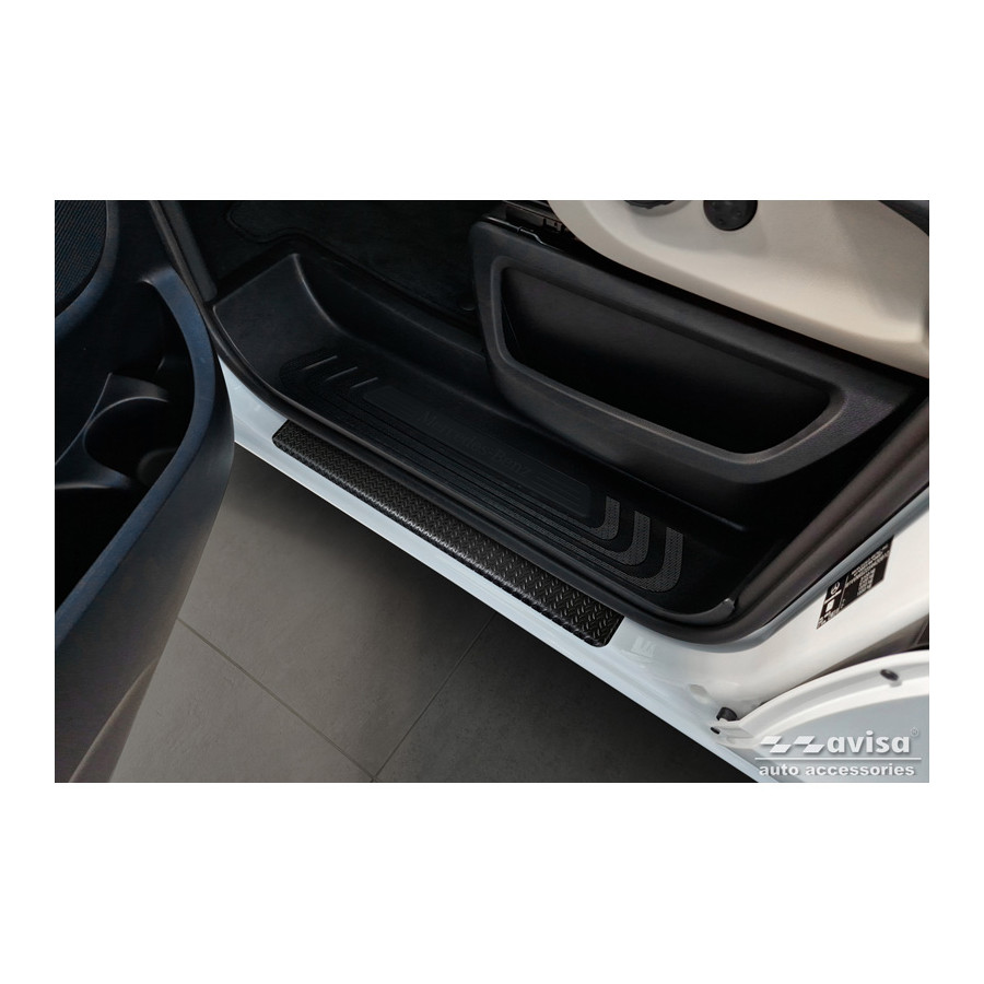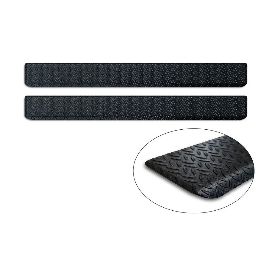 Aluminum Door Sill Trims 'Riffled Plate' suitable for Mercedes Vito III / V-Class (W447) 2014- - 2-piece - Black Door sill trims are the ultimate accessories to protect the sills of your car and give them a luxurious look. These are tailor-made for your car type, which guarantees a perfect fit. They prevent scratches and damage when getting in and out and protect against the elements. With a wide choice of materials and designs, you can give your car an individual look. These door sill trims are easy to attach using the supplied 3M tape.