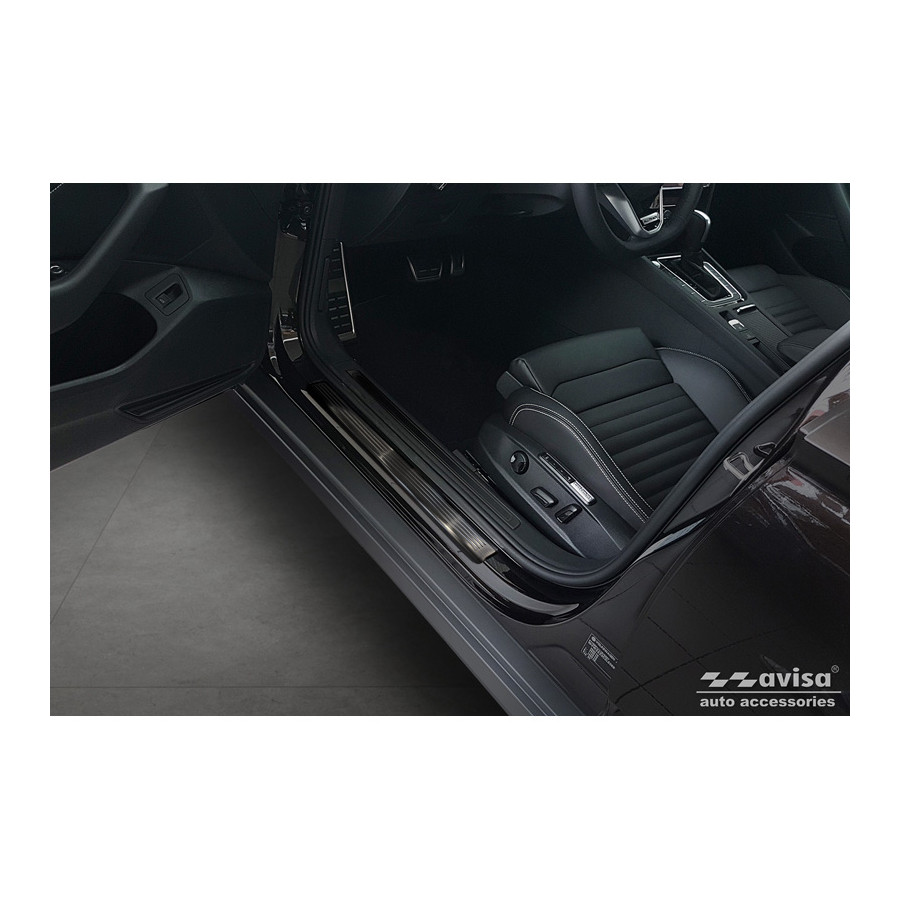 Black Stainless Steel Door Sill Moldings Suitable for Volkswagen Passat 3G Sedan/Variant 2014-2023 - 'Lines' - 4