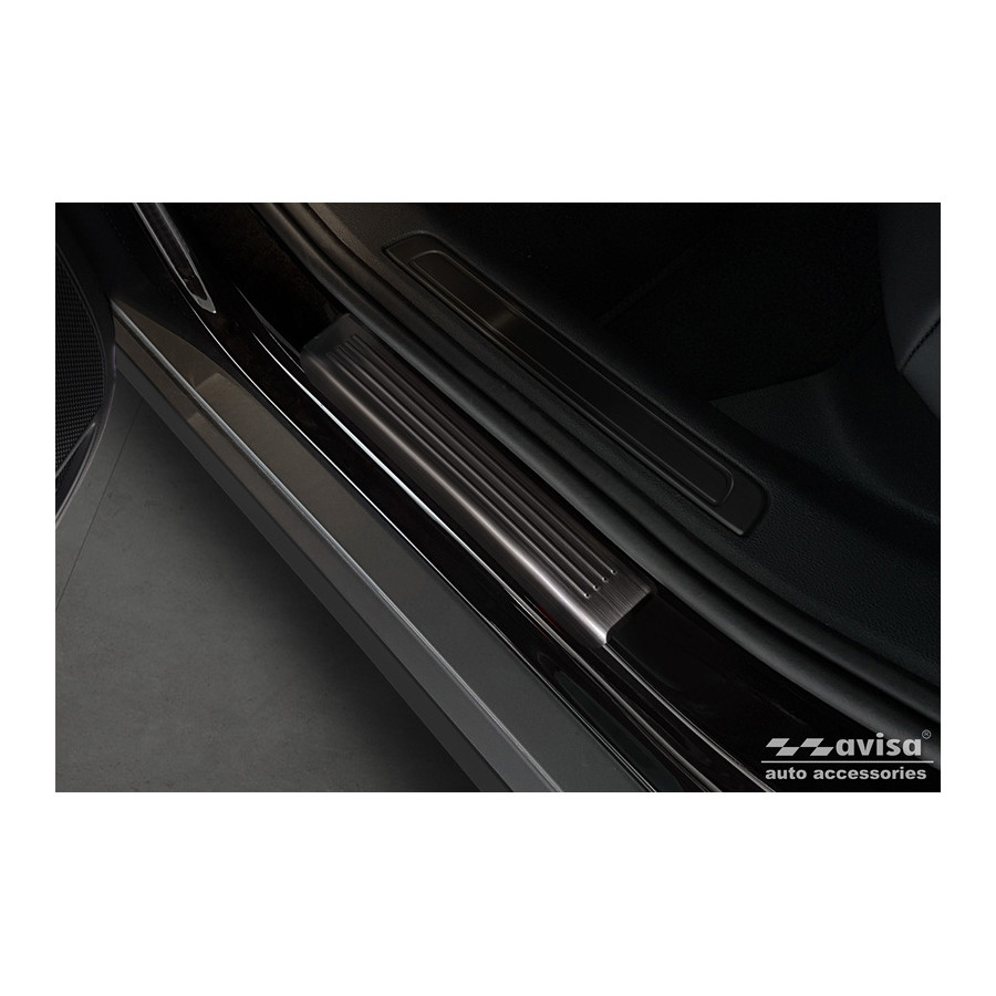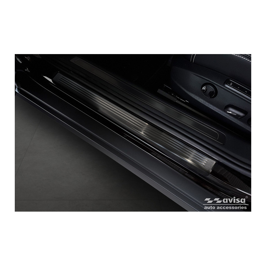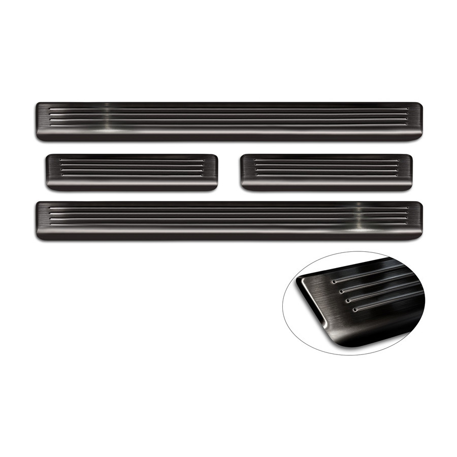 Black Stainless Steel Door Sill Trims suitable for Volkswagen Passat 3G Sedan/Variant 2014-2023 - 'Lines' - Set of 4Door sill trims are the ultimate accessories to protect the sills of your car and give them a luxurious look. These are tailor-made for your type of car, which guarantees a perfect fit. It prevents scratches and damage when getting in and out and protects against the elements. With a wide choice of materials and designs, you can give your car an individual look. These door sill trims are easy to attach using the supplied 3M tape. Specifications Additional informationStamped linesContents4-piece set for both front and rear doorsColourSilverMaterialStainless steel