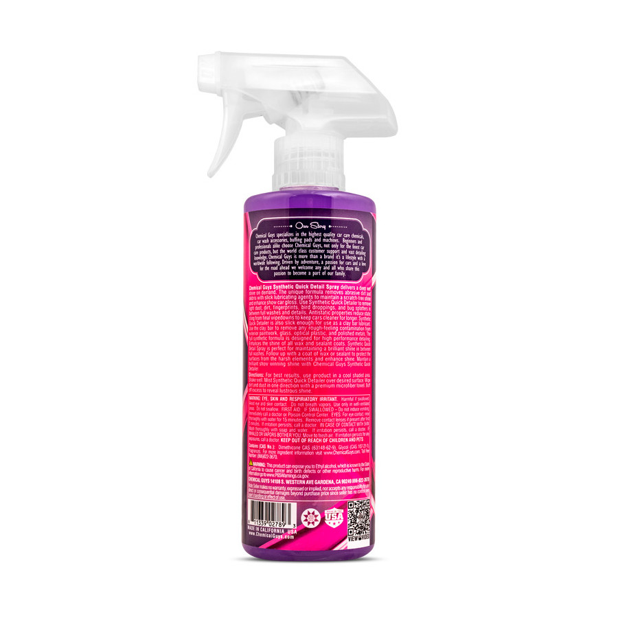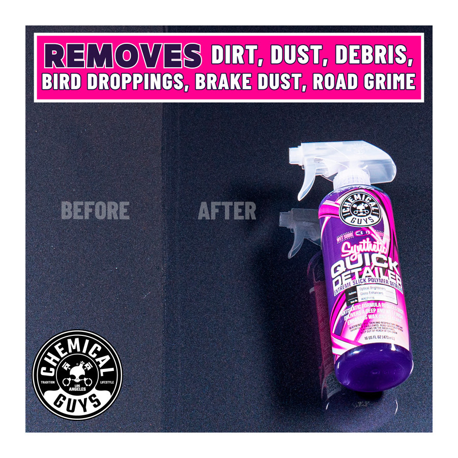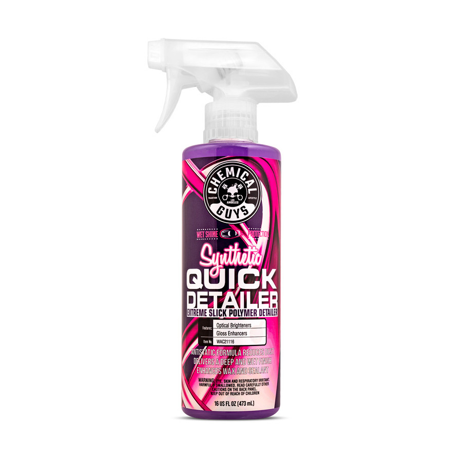 Synthetic Quick Detailer delivers a streak-free shine with stunning results on any color or exterior paint. Use it to remove dirt, residue, bird droppings, brake dust, and road grime without damaging delicate paintwork. The all-synthetic formula cleans and adds shine to all paint colors between washes, extending the life of wax and sealant layers. Synthetic Quick Detailer is formulated with specialized lubricants, anti-static technology, and lubricating agents that reduce static by up to 75%. This keeps your vehicle cleaner longer because dust and dirt are less likely to stick to the surface.
