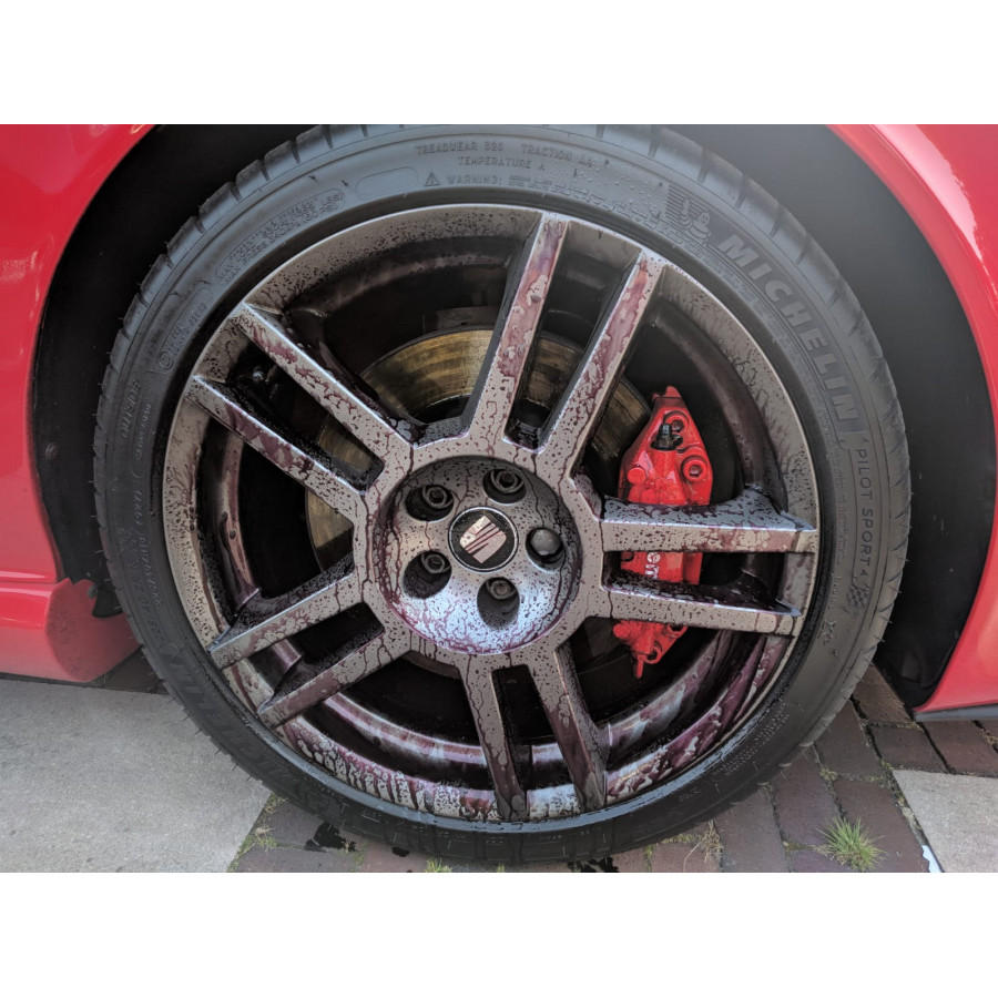 In the past period you have probably been offered some alternatives for this rim cleaner, they indeed seem the same but the effect is certainly not the same! The alternatives look the same, also discolour to red but the final effect does not come close to Alu-Teufel.