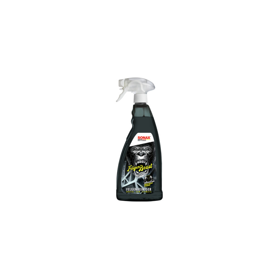 SONAX BEAST Wheel Cleaner doesn't give dirt a chance! Suitable for all steel and alloy wheels, as well as painted, chromed, polished, and matte rims. Even removes stubborn dirt.