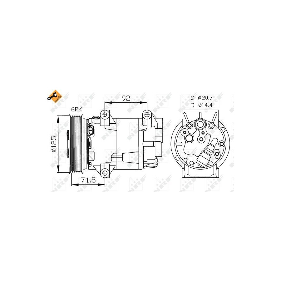 application Air conditioning pump Supplementary Article/Info 2 With PAG compressor oil With seal Voltage [V] 12 Manufacturer Restriction DELPHI EQUIVALENT Quality OE EQUIVALENT Belt Pulley Ø [mm] 125 Inlet Ø [mm] 20,5 Outlet Ø [mm] 14,4 Compressor ID CVC Number of grooves 6 Oil Fill Quantity [ml] 150 Connector Shape Oval Warranty 2 years Compressor oil PAG 150 Similar products of other manufacturers