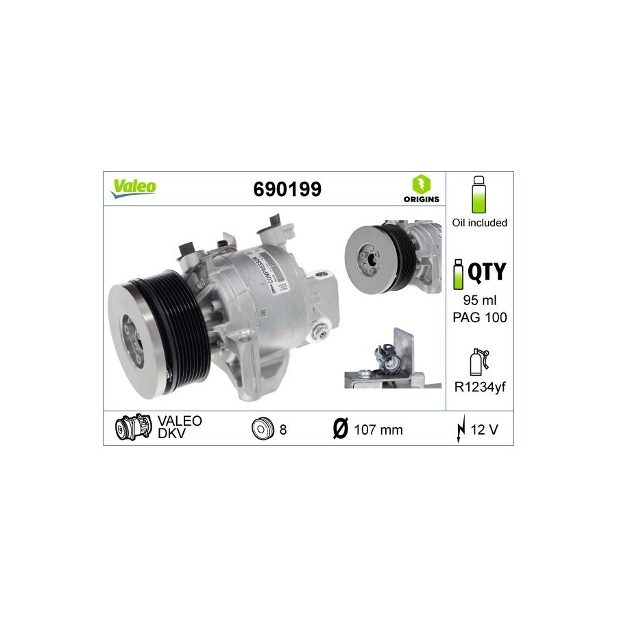 Compressor, air conditioning VALEO ORIGINS NEW OE TECHNOLOGY