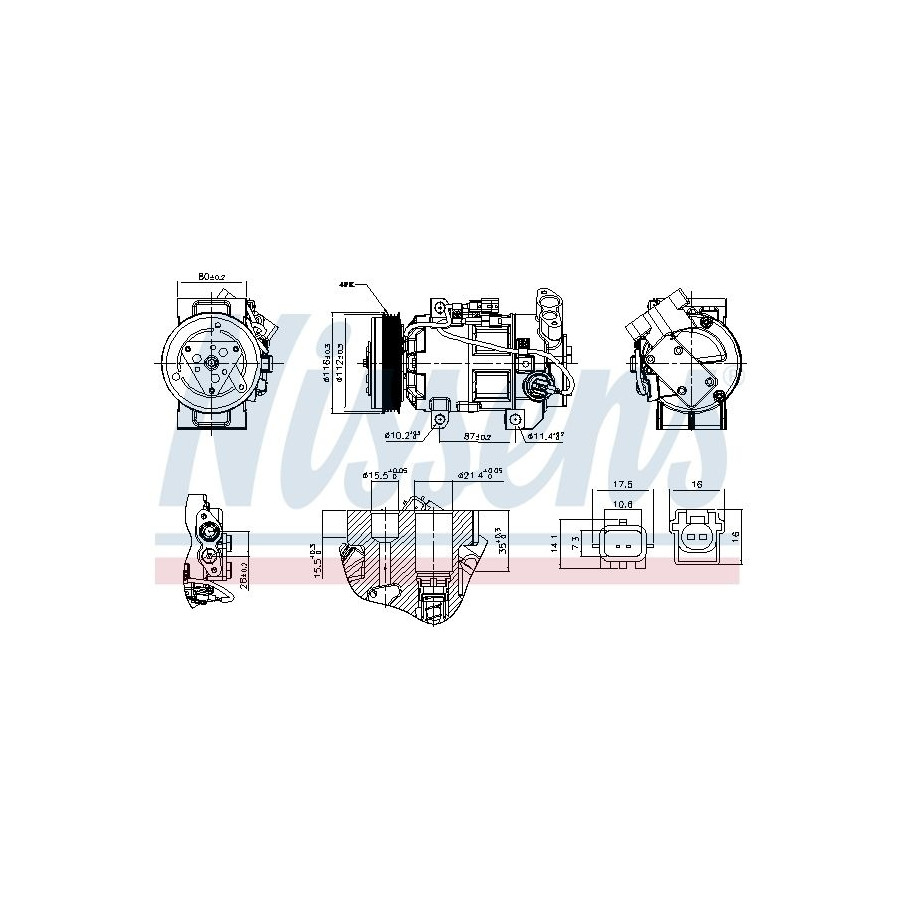 application Air conditioning pump Supplementary Article/Info 2 With magnetic coupling Voltage [V] 12 Belt Pulley Ø [mm] 112 Refrigerant R 1234yf R 134a Compressor ID VCS14EC Number of grooves 4 Capacity Compressor [cc] 140 Oil Fill Quantity [ml] 100 Connector Shape Rectangular Plug Type Male Warranty 2 years Number of contacts 2 Compressor oil PAG 46 YF Exhaust diameter [mm] 21,4 Output diameter [mm] 15,5 Similar products of other manufacturers