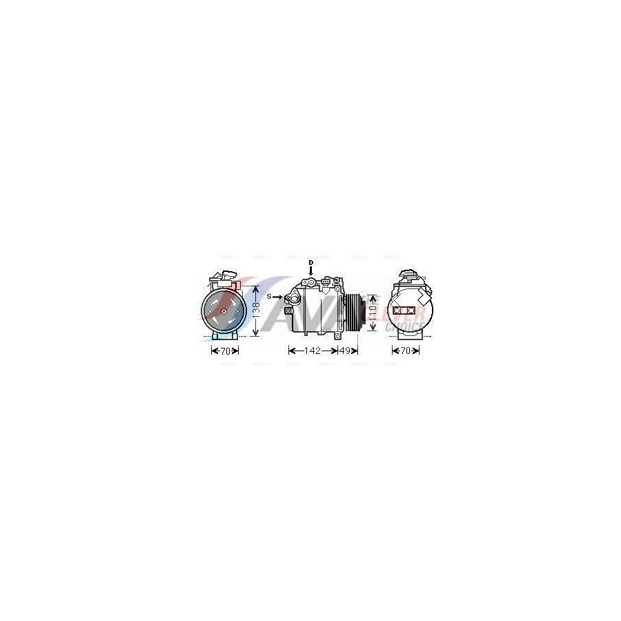 application Air conditioning pump Supplementary Article/Info 2 With PAG compressor oil With magnetic coupling Voltage [V] 12 Belt Pulley Ø [mm] 110 Refrigerant R 134a Compressor ID 6SE14 Number of grooves 6 Capacity Compressor [cc] 141 Oil Fill Quantity [ml] 150 Connector Shape Oval Plug Type Female Warranty 2 years Number of contacts 3 Compressor oil PAG 46 Exhaust diameter [mm] 28,4 Output diameter [mm] 15,3 Similar products of other manufacturers