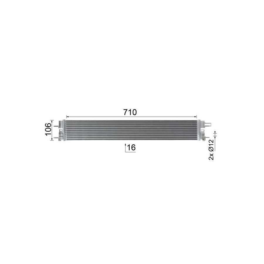 Supplementary Article/Info 2 With studs Without dryer Packaging length [cm] 96,8 Packaging width [cm] 14,30 Packaging height [cm] 17,90 Warranty 2 years Radiator type Cooling pipe in parallel manufacturer Mahle Core Length [mm] 710 Core Width [mm] 106 Core Depth [mm] 16 Net Weight [g] 816 Exhaust diameter [mm] 12 Output diameter [mm] 12 -