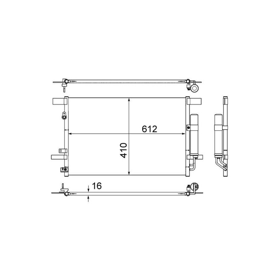 Supplementary Article/Info 2 With seal With dryer Packaging length [cm] 84,0 Packaging width [cm] 9,50 Packaging height [cm] 51,00 Warranty 2 years Radiator type Cooling pipe in parallel Core Length [mm] 612 Core Width [mm] 410 Core Depth [mm] 16 Net Weight [g] 2100 Similar products of other manufacturers