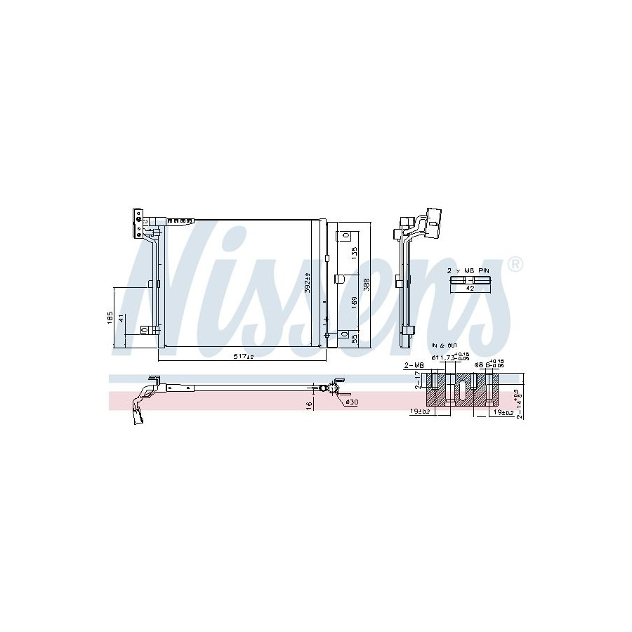 Material Aluminium Supplementary Article/Info 2 With dryer Supplementary Article/Supplementary Info With nitrogen filling Chemical Properties Corrosion resistant Refrigerant R 134a R 1234yf Warranty 2 years Core Length [mm] 517 Core Width [mm] 392 Core Depth [mm] 16 Exhaust diameter [mm] 11,7 Output diameter [mm] 8,6 -
