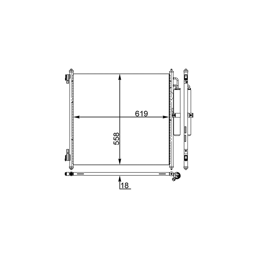Supplementary Article/Info 2 With dryer Packaging length [cm] 70,8 Packaging width [cm] 5,70 Packaging height [cm] 62,00 Warranty 2 years Radiator type Cooling pipe in parallel Core Length [mm] 619 Core Width [mm] 558 Core Depth [mm] 18 Net Weight [g] 4100 Similar products of other manufacturers