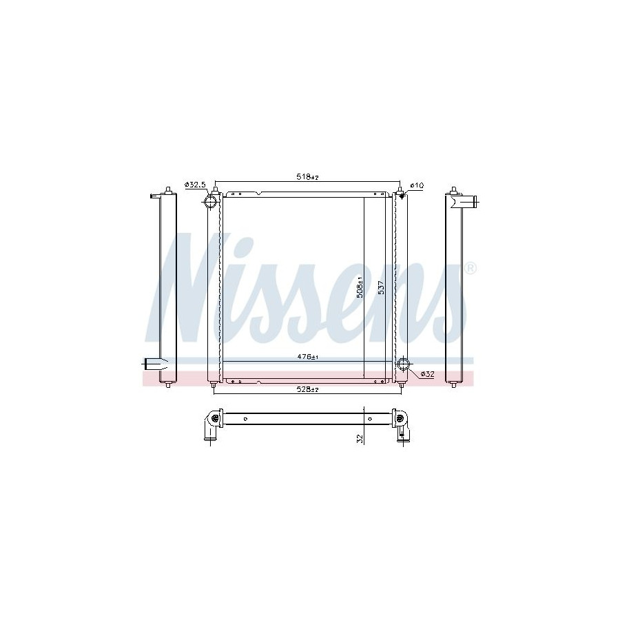 Type Radiator Core Length [mm] 476 Core Width [mm] 508 Supplementary Article/Supplementary Info With gaskets/seals Warranty 2 years Radiator type Soldered cooling fins Cooling Fins Material Aluminium Material tank (radiator) Plastic Core Depth [mm] 32 Exhaust diameter [mm] 32,5 Output diameter [mm] 32 Similar products of other manufacturers