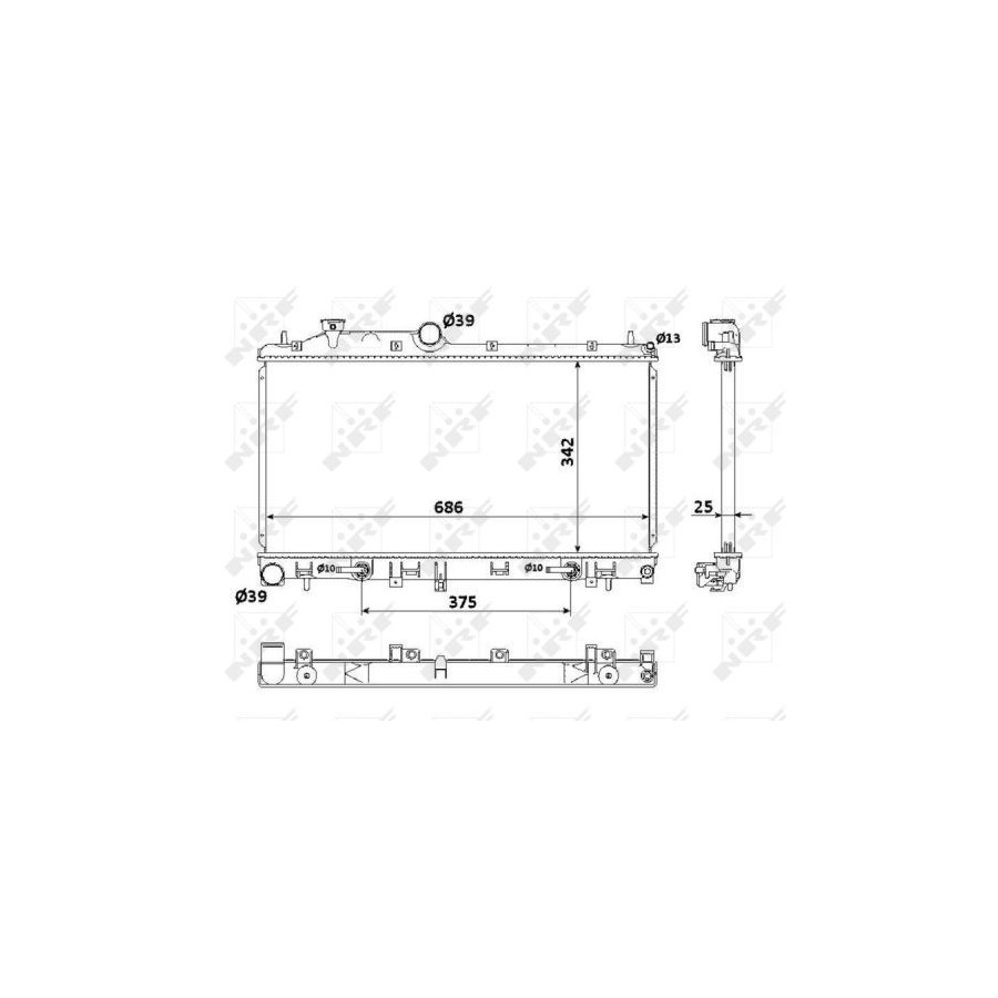Type Radiator Core Length [mm] 686 Core Width [mm] 342 Material Aluminium Heating / Cooling For vehicles with combined radiator/ oil cooler Warranty 2 years Radiator type Soldered cooling fins Core Depth [mm] 25 Similar products of other manufacturers