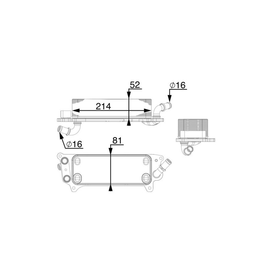 application Housing driving 7-Speed dual-clutch transmission Supplementary Article/Supplementary Info Without gasket / seal Packaging length [cm] 36,6 Packaging width [cm] 20,10 Packaging height [cm] 12,50 Warranty 2 years Radiator type Soldered cooling fins manufacturer Mahle Core Length [mm] 214 Core Width [mm] 81 Core Depth [mm] 52 Net Weight [g] 1519 Exhaust diameter [mm] 16 Output diameter [mm] 16 Similar products of other manufacturers