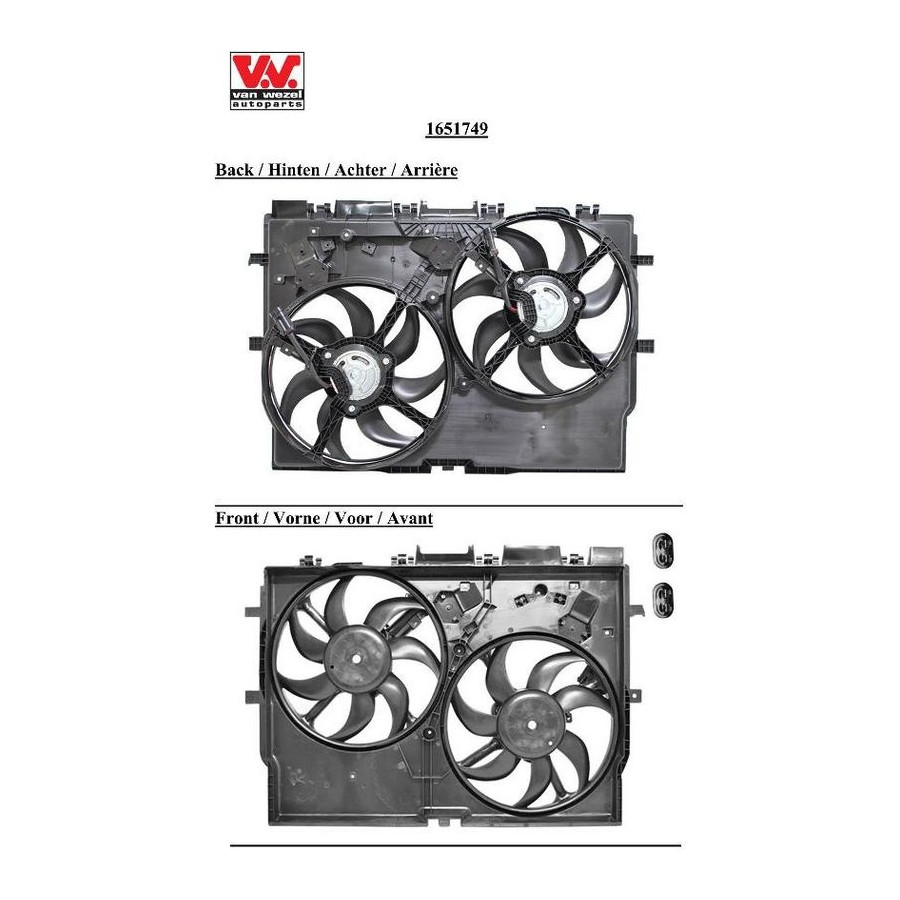 Supplementary Article/Info 2 With radiator fan shroud Supplementary Article/Supplementary Info With electric motor Heating / Cooling Double Fan Rated Voltage [V] 12 Connector Shape Oval Warranty 2 years Rated Power 1 [W] 200 Rated Power 2 [W] 300 Diameter 1 (mm) 390 Diameter 2 (mm) 390 Similar products of other manufacturers