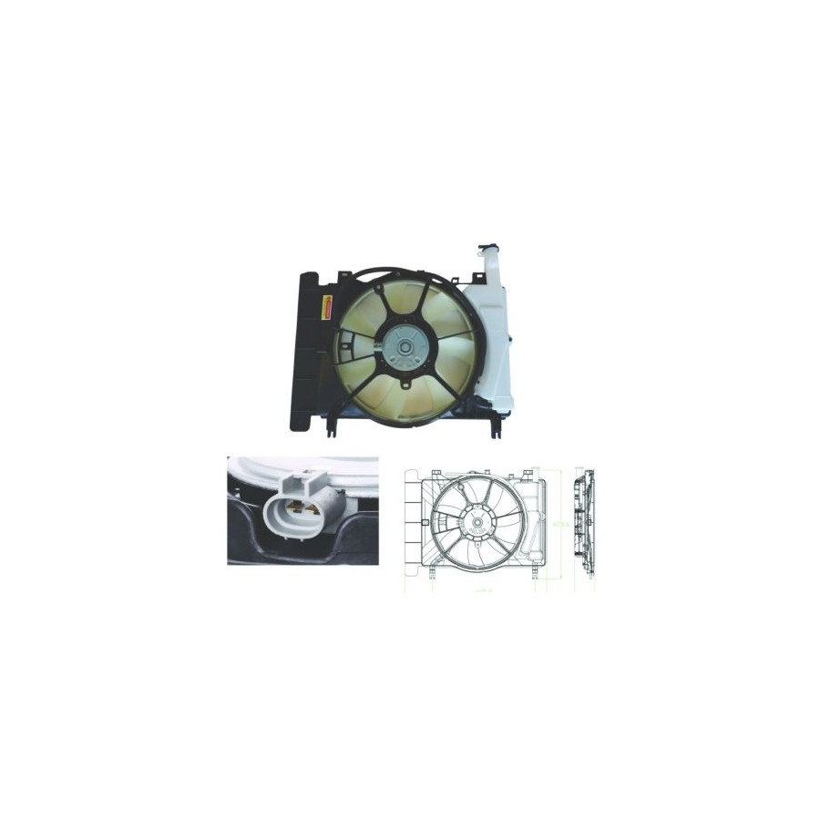 Supplementary Article/Info 2 With radiator fan shroud Voltage [V] 12 Heating / Cooling Single Fan Number of Fan Blades 7 Connector Shape Oval Warranty 2 years Diameter 1 (mm) 355 Number of contacts 2 Similar products of other manufacturers
