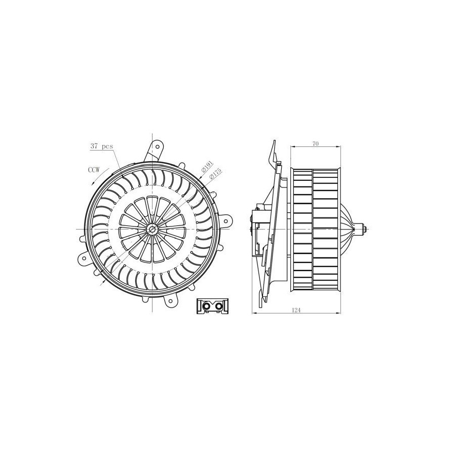 Voltage [V] 12 Connector Shape Rectangular Rotation Direction Anti-clockwise rotation Warranty 2 years Left / right steering For right-hand drive vehicles Power [W] 456 Diameter 1 (mm) 175 Number of contacts 2 Similar products of other manufacturers