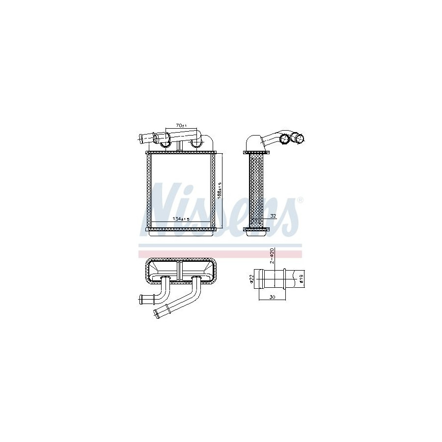 Supplementary Article/Supplementary Info With pipe Warranty 2 years Radiator type Soldered cooling fins Cooling Fins Material Aluminium Material tank (radiator) Aluminium Core Length [mm] 134 Core Width [mm] 168 Core Depth [mm] 32 Exhaust diameter [mm] 19 Output diameter [mm] 19 Similar products of other manufacturers