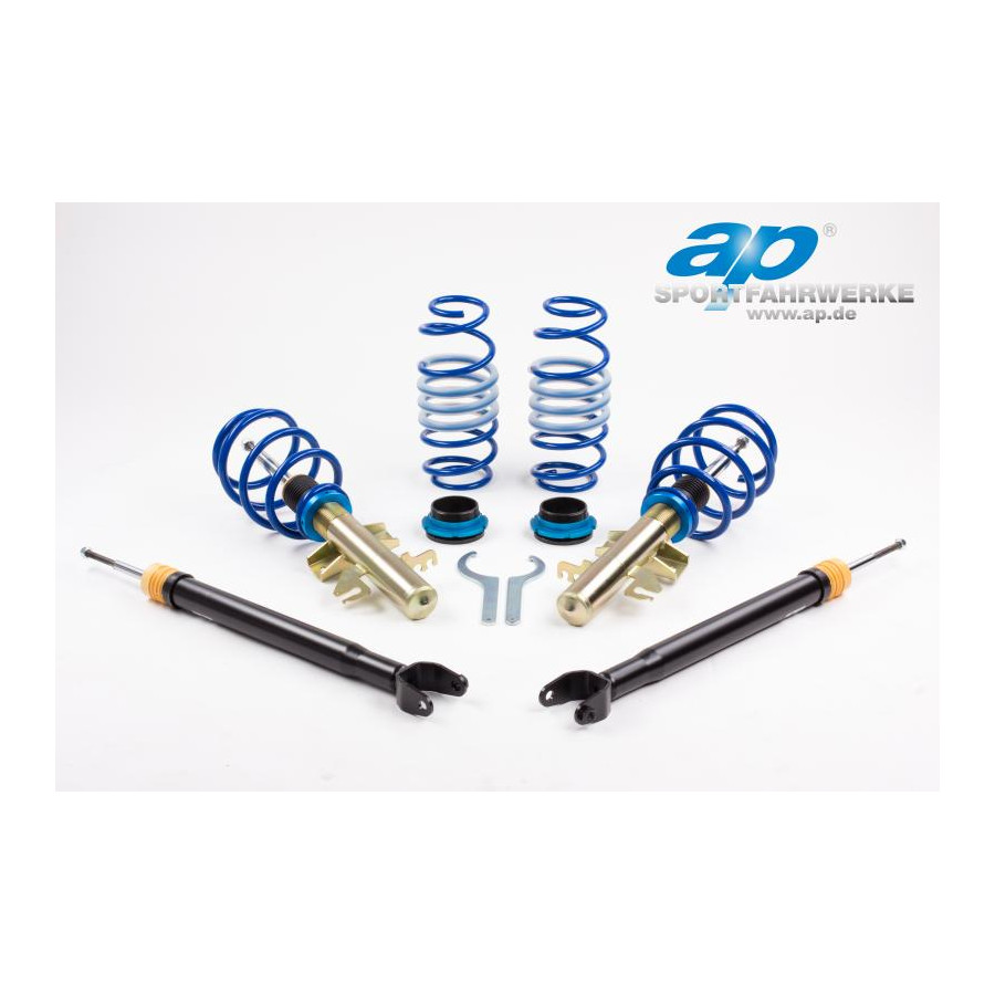 The coilover kits consist of zinc-plated anti-corrosion parts, and the blue powder-coated springs create a sporty look. AP coilover kits are height-adjustable for most cars, both front and rear. Please note that not all kits are adjustable at the rear axle, due to the car's construction. Enter your license plate number or car model to see which ones are suitable for your car.