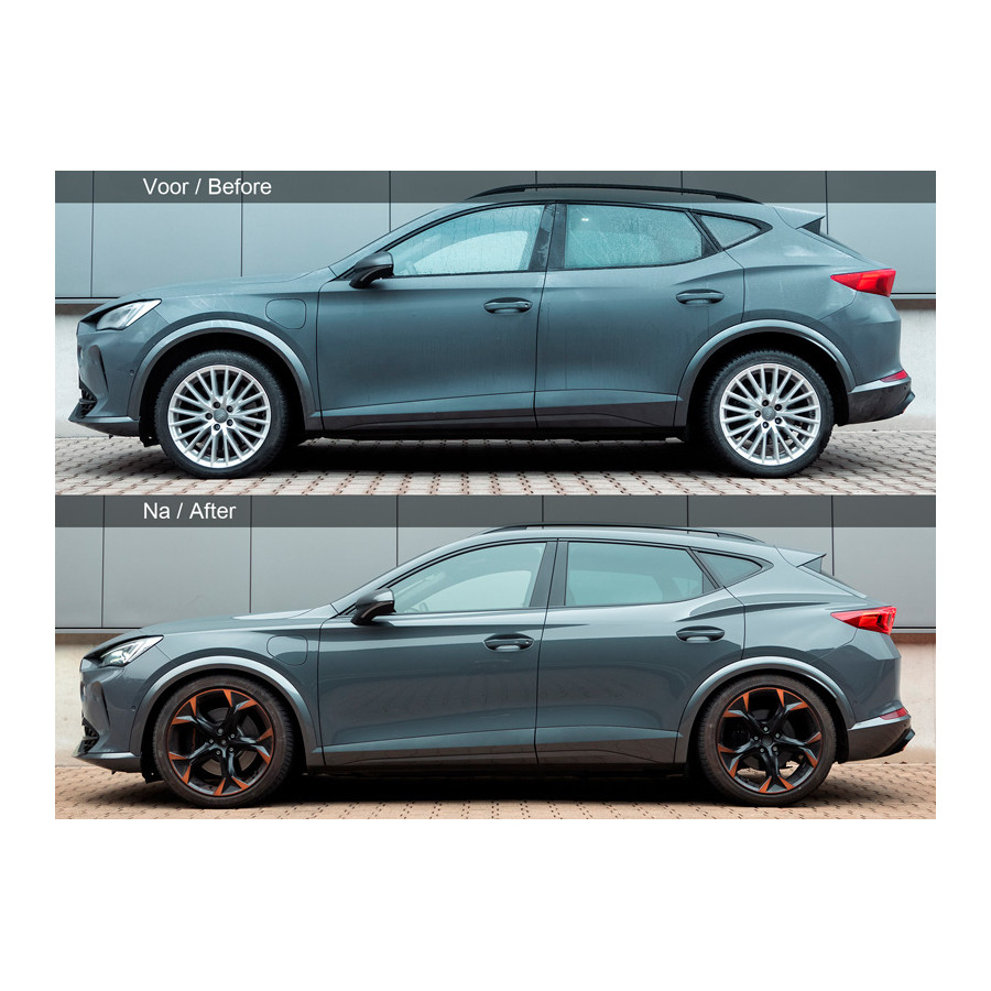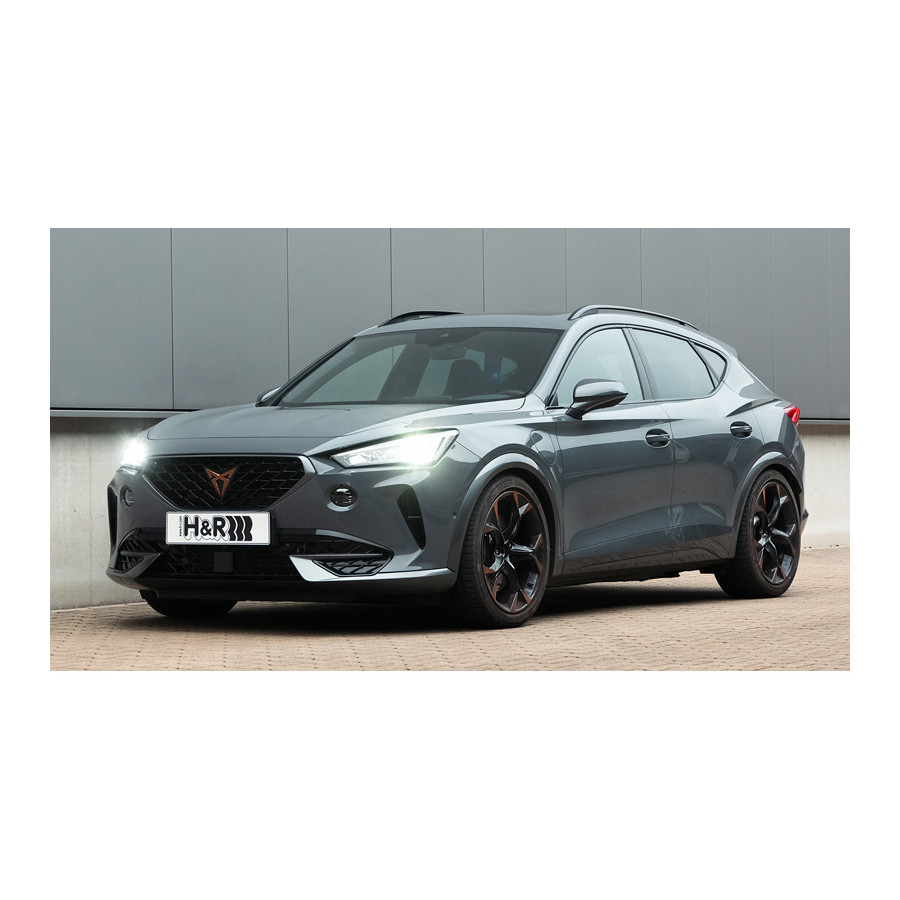 H&R Monotube Coilover suitable for Cupra Formentor 2.0 TDI/TSI 2020- VA50-65/AA45-65mmThe H&R Monotube Coilover offers dynamic performance without losing driving comfort. These Monotube coilovers have a threaded shock absorber that allows virtually infinite ride height adjustments. Product benefits: Monotube gas shock absorber for a precise response Special high-quality H&R springs Including adjustment key Robust trapezoidal thread for height adjustment Long-term corrosion protection With TÜV High-quality components for a long service life Made in Germany Applicable to: Cupra Formentor Type KM, 2020-, 2.0 TDI/TSI incl. VZ, incl. , incl. Adaptive suspension, Front axle 50-65mm / Rear axle 45-65mm Notes:1) For models with an optional sports suspension, the lowering may be less2) The installation of this kit on models with electronic damper control (DCC, EDC, etc.) may only be carried out by a brand-specific specialist workshop/brand dealer. The signal from the electronic damper system in the display must be deactivated. Attention Belgian customers! The Goca certificate for Belgium is not supplied as standard. You can request this via your Autostyle dealer. The price for the certificate is €30,-