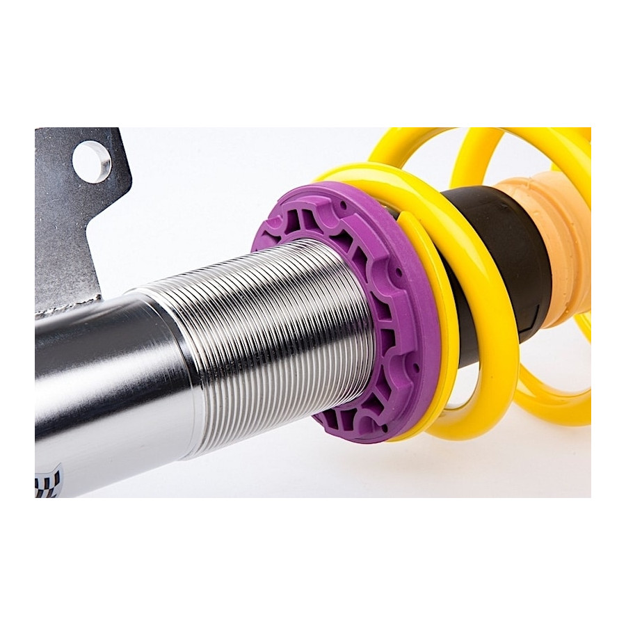 With the KW Variant 1 screw set you achieve a maximum reduction in the TÜV-tested adjustment range. The range varies from 30 to 70 mm or 50 to 90 mm depending on the vehicle variant.