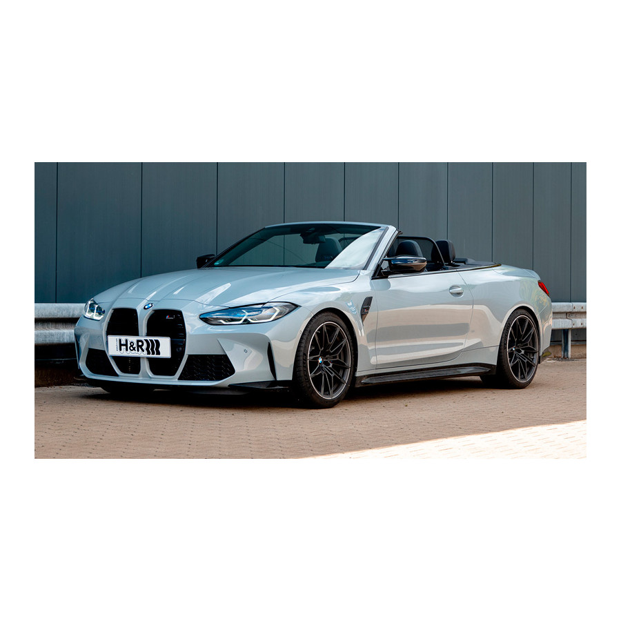 H&R Lowering springs suitable for BMW M4 Convertible (G83) incl. Competition (xDrive) 2021-, only with adaptive 'M' chassis VA30/AA30mmH&R Lowering springs have been developed to provide better handling and a lower ride height while maintaining excellent ride quality. The ideal choice for the enthusiast of racing characteristics on the public road. Sporty lookLowered center of gravityLinear or progressive spring designCan be combined with OEM and aftermarket shock absorbersImproved driving characteristicsSupplied with ABE or TÜV certificateDesigned, produced and tested in GermanyPowder coated for improved looks and corrosion resistanceApplicable to:BMW M4 Convertible (G83) incl. Competition, xDrive, with ABE, only with adaptive M-Sport suspension 2021- Front axle 30mm/Rear axle 30mm Attention Belgian customers! The Goca certificate for Belgium is not included as standard. You can request this via your Autostyle dealer. The price for the certificate is €30,-