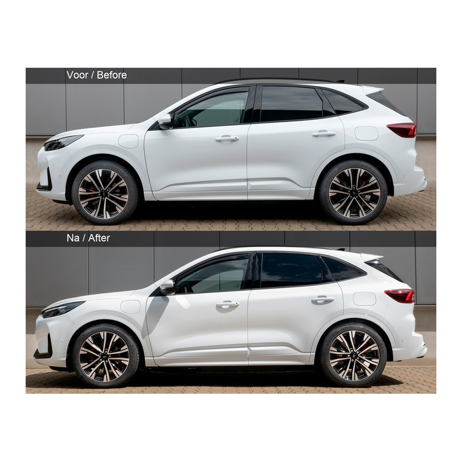 H&R Lowering Springs suitable for Ford Kuga III 2.5 Duratec PHEV plug-in-Hybrid (2WD) 2019-09/2021 VA35/AA35mmH&R Lowering Springs have been developed to provide better road holding and a lower ride height while maintaining an excellent ride quality. The ideal choice for lovers of racing properties on public roads. Sporty appearanceLowered center of gravityLinear or progressive spring designCan be combined with OEM and aftermarket shockabsorbersImproved handlingAbe or TÜV certifiedDesigned, produced and tested in GermanyPowder coating for an improved appearance and corrosion resistanceApplicable to:Ford Kuga III 2WD 2019-09/2021 Type DFK, 2.5 Duratec plug-in hybrid, incl. sports suspension, excl. adaptive shock absorbers, excl. bad road suspension, Front axle 35mm/Rear axle 35mm Attention Belgian customers! The Goca certificate for Belgium is not included as standard. You can request this through your Autostyle dealer. The price for the certificate is €30,-