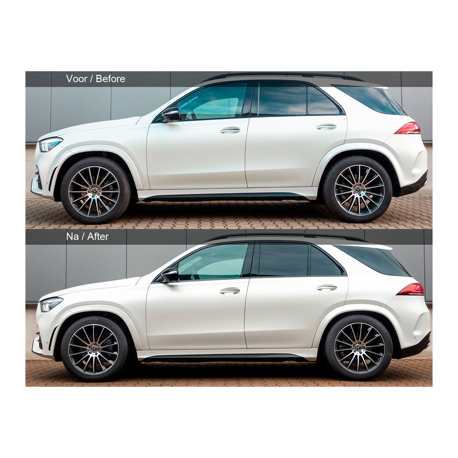 H&R Lowering springs suitable for Mercedes GLE Coupé + SUV (300d/350d/400d/450) 4WD 2019- VA25/AA30mmH&R Lowering springs have been developed to provide better road holding and a lower ride height while maintaining excellent ride quality. The ideal choice for enthusiasts of racing properties on public roads. Sporty appearance Lowered center of gravity Linear or progressive spring design Can be combined with OEM and aftermarket shock absorbers Improved driving characteristics Supplied with ABE or TÜV certificate Designed, produced and tested in Germany Powder coating for an improved appearance and corrosion resistance Applicable to: Mercedes GLE Coupé Type 167, 4WD, without air suspension 2019 - Front axle 25mm / Rear axle 30mm Attention Belgian customers! The Goca certificate for Belgium is not supplied as standard. You can request this through your Autostyle dealer. The price for the certificate is €30.