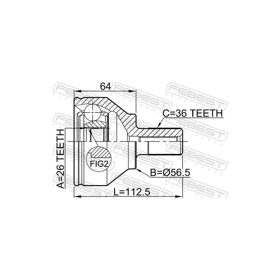 Fitting Position Wheel Side Outer diameter [mm] 90 Fitting Position Front Axle Outer gearing wheel side 36 Internal Teeth, wheel side 26 Joint Type CV Joint Warranty 2 years O-ring diameter (mm) 56 Similar products of other manufacturers