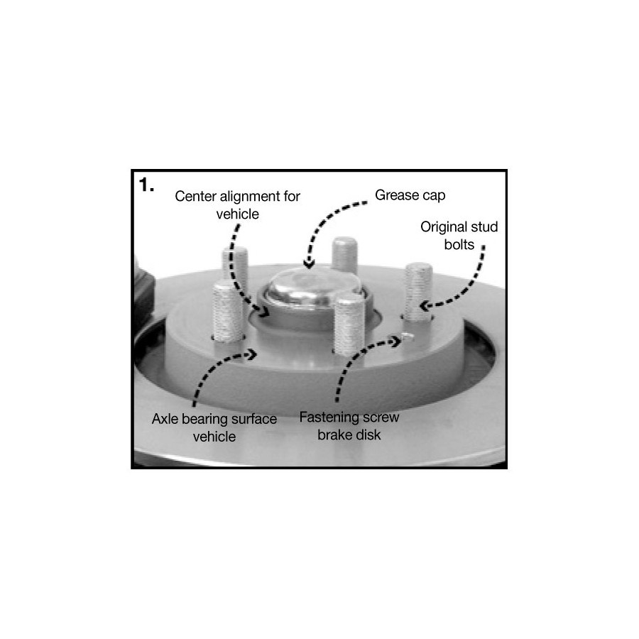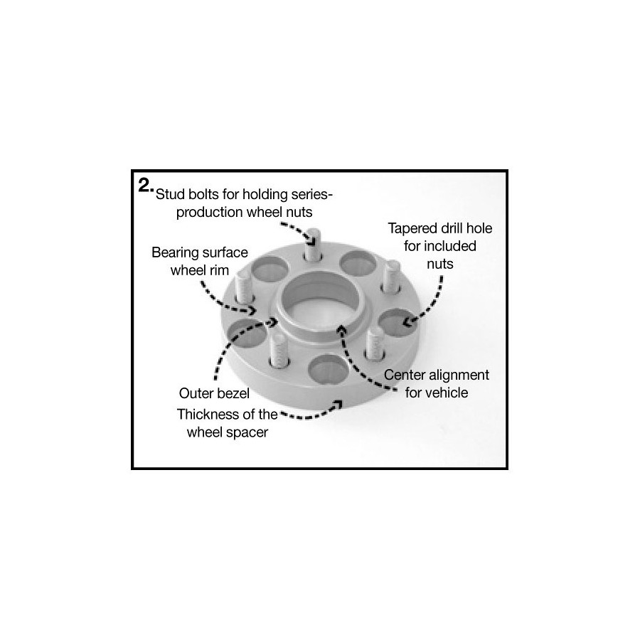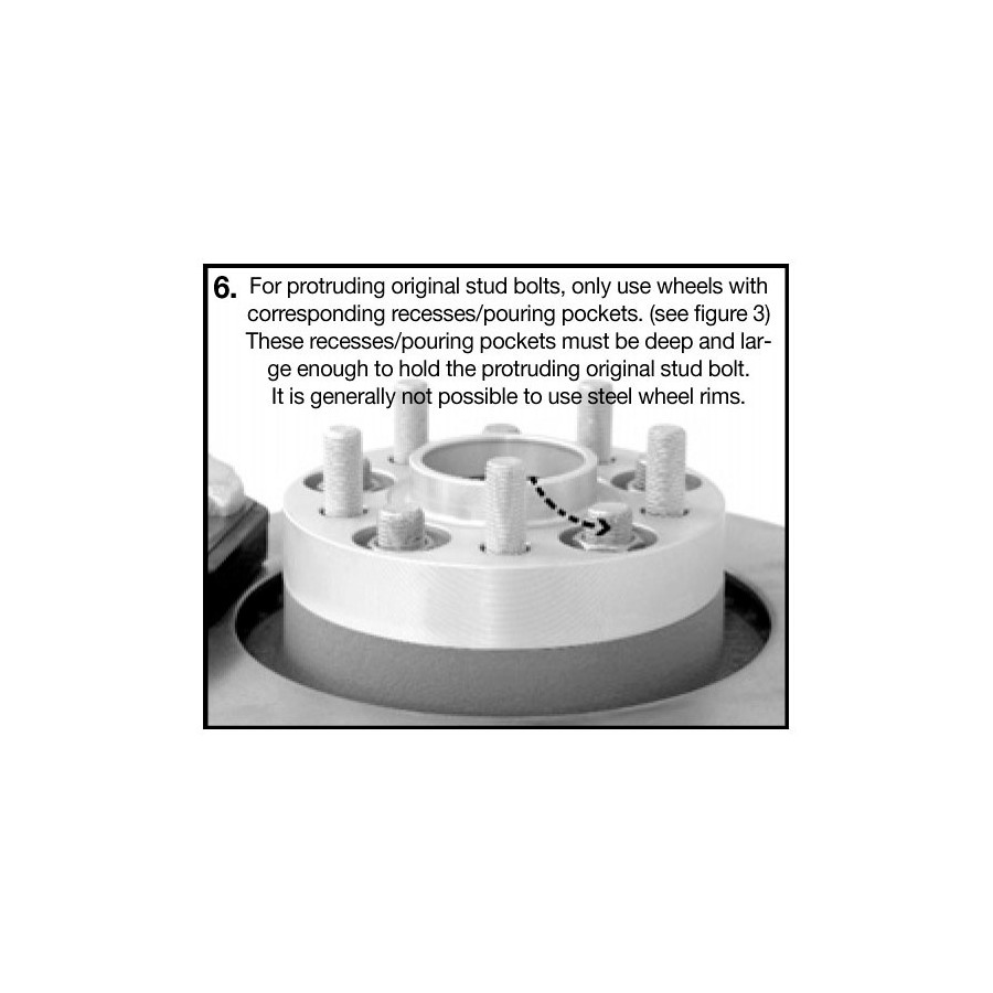 The wheel spacer must be fastened to the axial hub using the supplied mounting nuts. Then the wheels must be mounted using the original wheel nuts supplied with the wheels. The use of steel wheels in combination with DRM systems is generally not possible!