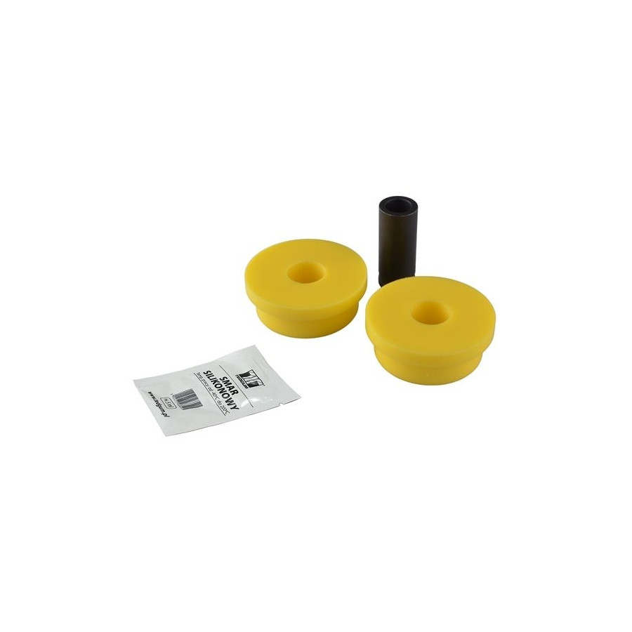 Material PU (Polyurethane) Outer diameter [mm] 65 Fitting Position Rear Axle Fitting Position Left and right, both sides Front Rear Inner diameter [mm] 16 Supplementary Article/Info 2 With grease cover Required quantity 4 Colour Yellow Steering arm type For drag link Warranty 2 years Shore A hardness value base element 90 Weight [kg] 0,34 -