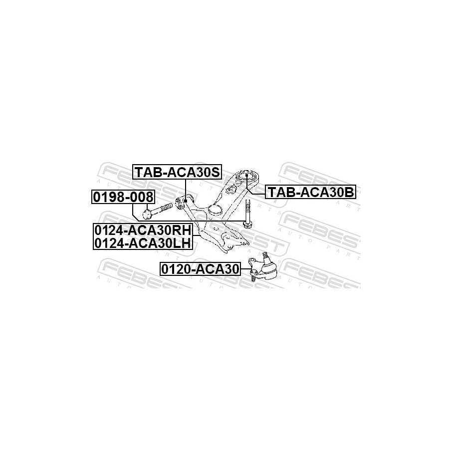 Manufacturer Manufacturer number Price ASVA 0101-ACA30S BIRTH 20102 BLUE PRINT ADBP800182 FEBEST TAB-ACA30S (this product) FEBI BILSTEIN 173900 GSP 516221 HERTH+BUSS JAKOPARTS J4202113 LYNXauto C8571 MAXGEAR 72-6811 METZGER 52098908 METZGER 52099008 MEYLE 30-14 610 0014 MONROE L13L64 MOOG TO-SB-19098 NIPPARTS N4232084 -
