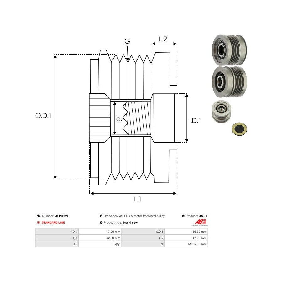Quality Standard line Thread Size M16X1,5 Number of grooves 5 Warranty 2 years New part without deposit Similar products of other manufacturers