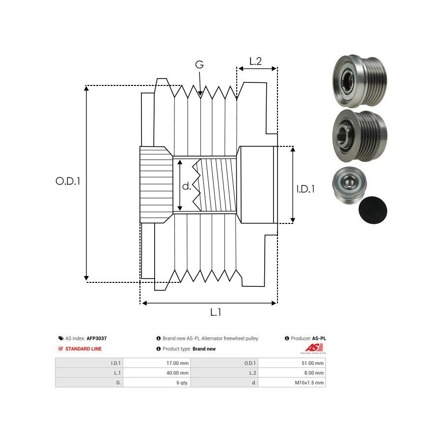 Quality Standard line Thread Size M16X1,5 Number of grooves 6 Warranty 2 years New part without deposit -
