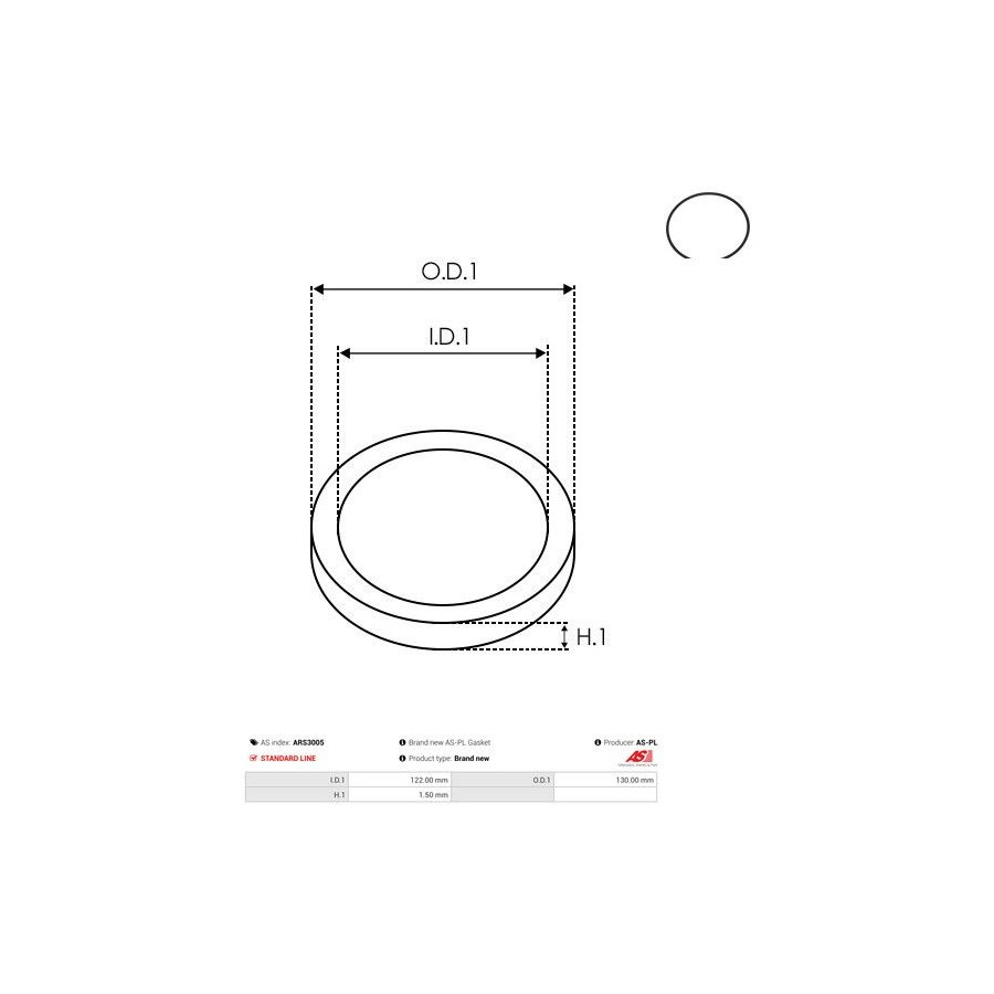 Inner diameter 1 [mm] 122,00 Outer diameter 1 [mm] 130,00 Quality Standard line Warranty 2 years Height 1 (mm) 1,50 New part without deposit -