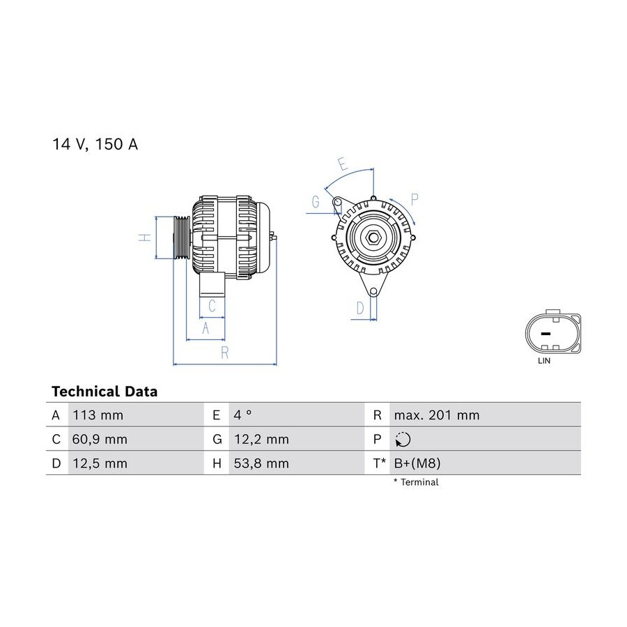 | Distance from pulley to alternator [mm] | 113 |