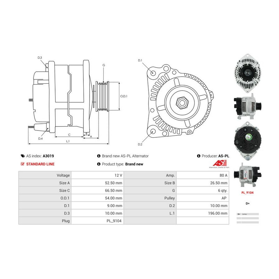 Manufacturer Manufacturer number Price AD KÜHNER 301039RI AES 505.518.080.000 ALANKO 10442478 AS-PL A3019 (this product) AS-PL A3019 ASHIKA AL-156JM BORG & BECK BBA2638 BTS Turbo G103046 BTS Turbo G105971 CASCO CAL15117AS CASCO CAL15117GS CEVAM 4622 COMLINE CAR-821194 COMLINE CAL0264 CV PSH 505.518.080.000 DA SILVA 016635 DA SILVA JA016635 DA SILVA MAQ0263 DRI 218145802 Manufacturer Manufacturer number Price EAI 56409 ELSTOCK 28-2621 ERA 210011A FISPA A12VA0029A2 HERTH+BUSS ELPARTS 32041381 HOFFER H5515079 JAPANPARTS AL-156JM JAPKO AL-156JM MEAT & DORIA 5515079 PRESTOLITE ELECTRIC A2141V SIDAT A12VA0029A2 SNRA FI8041 TURBO MOTOR AL01283 VALEO 439064 VALEO 436635 VALEO 200136 WALKER WAL00365 WILMINK GROUP WG2196868 WILMINK GROUP WG2471254 -