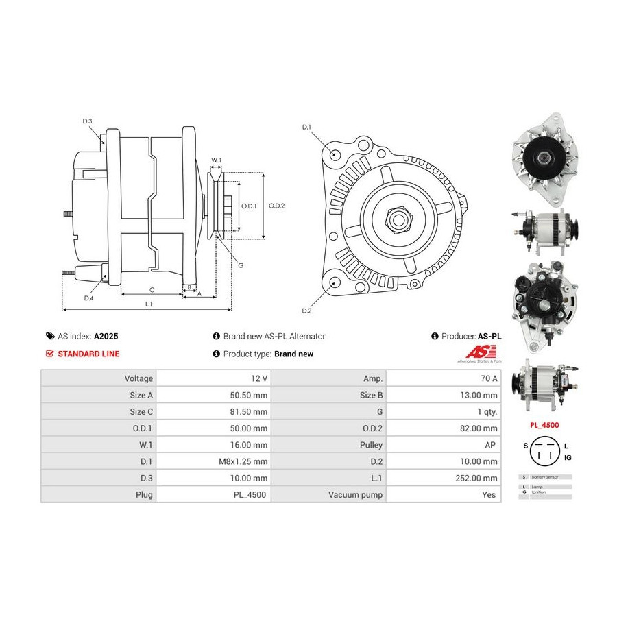 Voltage [V] 12 Alternator Charge Current [A] 70 Pulleys With belt pulley for OE number LR160446 Quality Standard line Warranty 2 years New part without deposit Similar products of other manufacturers
