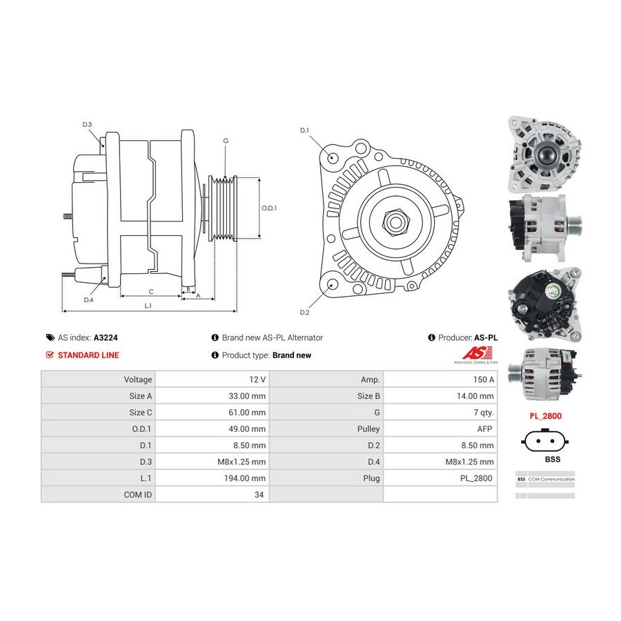Manufacturer Manufacturer number Price AD KÜHNER 554164RI AD KÜHNER 554164RIV AD KÜHNER 554164RIS AES 575.933.150.280 AES 575.933.150.000 ALANKO 10444026 AS-PL A3224 (this product) AS-PL A3224 ASHIKA 002-D441 BTS Turbo G104174 BTS Turbo G104173 BTS Turbo G104078 BTS Turbo G104172 CASCO CAL15420AS CASCO CAL15420GS CEVAM 4144 CV PSH 575.933.150.346 CV PSH 575.933.150.004 CV PSH 575.933.150.500 CV PSH 575.933.150.280 CV PSH 575.933.150.000 DA SILVA 012100 DA SILVA JA012100 DA SILVA MAQ0413 DIPASPORT ALT122KUHN DRI 2303471502 EAI 57495 Manufacturer Manufacturer number Price ELSTOCK 28-5929 ERA 209165A ERA 209165 FISPA A12VA0294AS FISPA A12VA0294 FISPA A12BH0294 HERTH+BUSS ELPARTS 32005001 HOFFER H5515340 HOFFER H55101413G JAPANPARTS ALD441 JAPKO 2D441 MAXGEAR 55-0539 MEAT & DORIA 55101413G MEAT & DORIA 5515340 PRESTOLITE ELECTRIC A2067V SIDAT A12VA0294 SIDAT A12BH0294 SIDAT A12VA0294AS SNRA TR8249 TRISCAN 8310 10101 TURBO MOTOR AL02950 VALEO 440358 VALEO 200212 VALEO 439766 WAI 24045N WALKER WAL00070 WILMINK GROUP WG2471593 -