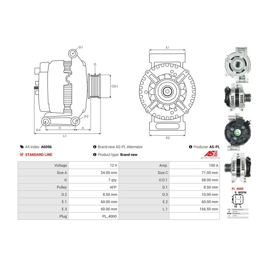 Voltage [V] 12 Alternator Charge Current [A] 100 Pulleys With freewheel belt pulley for OE number 1042105140 Quality Standard line Warranty 2 years New part without deposit Similar products of other manufacturers