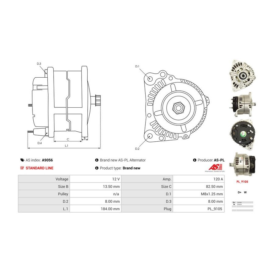 Manufacturer Manufacturer number Price AD KÜHNER 553881RID AD KÜHNER 553881RIM AD KÜHNER 553881RI AES 705.506.120.311 AES 705.506.120.090 AS-PL A9056 AS-PL A9056 (this product) Manufacturer Manufacturer number Price BTS Turbo G107231 BTS Turbo G105091 BTS Turbo G104513 CV PSH 705.506.120.311 CV PSH 705.506.120.090 PRESTOLITE ELECTRIC A5012D WAI 12739N -
