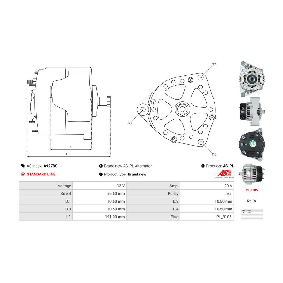 Voltage [V] 12 Alternator Charge Current [A] 90 Pulleys Without belt pulley for OE number AAK5391 Quality Standard line Warranty 2 years New part without deposit Similar products of other manufacturers