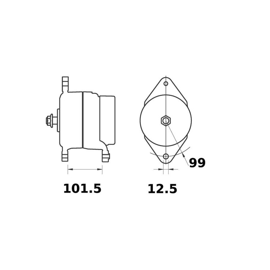 Voltage [V] 14 Alternator Charge Current [A] 95 Pulleys Without belt pulley Mounting points diameter [mm] 99,0 Mounting bores distance [mm] 101,5 Connector / Clamp W Rotation Direction Clockwise rotation Packaging length [cm] 30,5 Packaging width [cm] 23,00 Packaging height [cm] 20,50 Warranty 2 years Dust Cover With dust cover Net Weight [g] 5862 Hole diameter [mm] 12,5 Similar products of other manufacturers