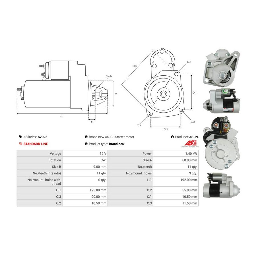 | Starter motor power [kW] | 1,4 |