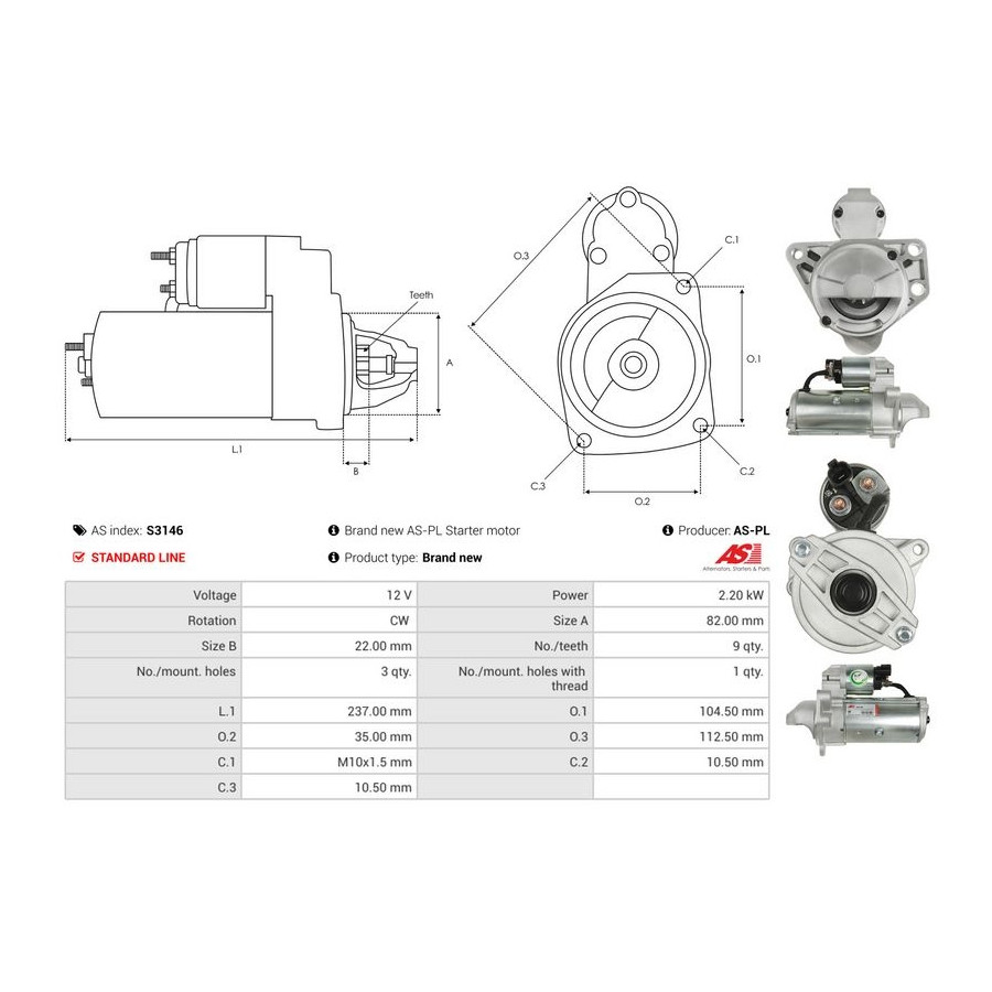 Number of Teeth 9 Rated Power [kW] 2,2 Number of mounting bores 3 Rotation Direction Clockwise rotation Voltage [V] 12 for OE number 1196601 Quality Standard line Warranty 2 years New part without deposit Similar products of other manufacturers