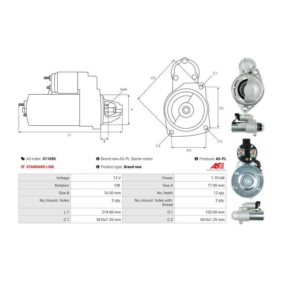 Number of Teeth 12 Number of mounting bores 2 Rotation Direction Clockwise rotation Starter motor power [kW] 1,7 Voltage [V] 12 for OE number 8000511 Quality Standard line Warranty 2 years New part without deposit Similar products of other manufacturers