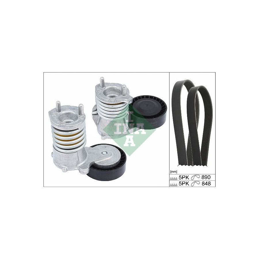 Number of Ribs 5 application V-ribbed belt set Supplementary Article/Info 2 Check the alternator pulley and replace if necessary. Length 1 [mm] 890 Length 2 [mm] 848 Number of belts 2 Warranty 2 years Observe mounting information Number of grooves 2 5 Similar products of other manufacturers