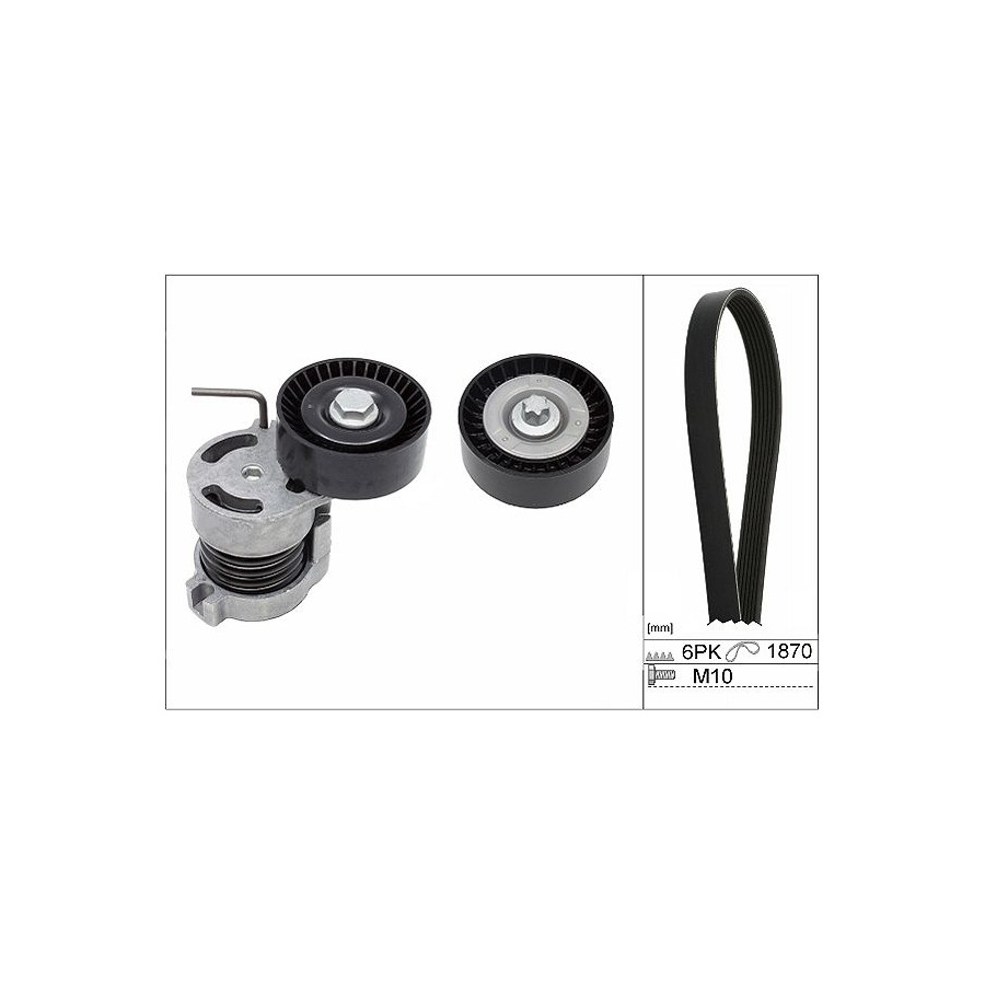 Number of Ribs 6 application V-ribbed belt set Supplementary Article/Info 2 Check the alternator pulley and replace if necessary. Observe service information Length 1 [mm] 1870 Warranty 2 years Observe mounting information Similar products of other manufacturers