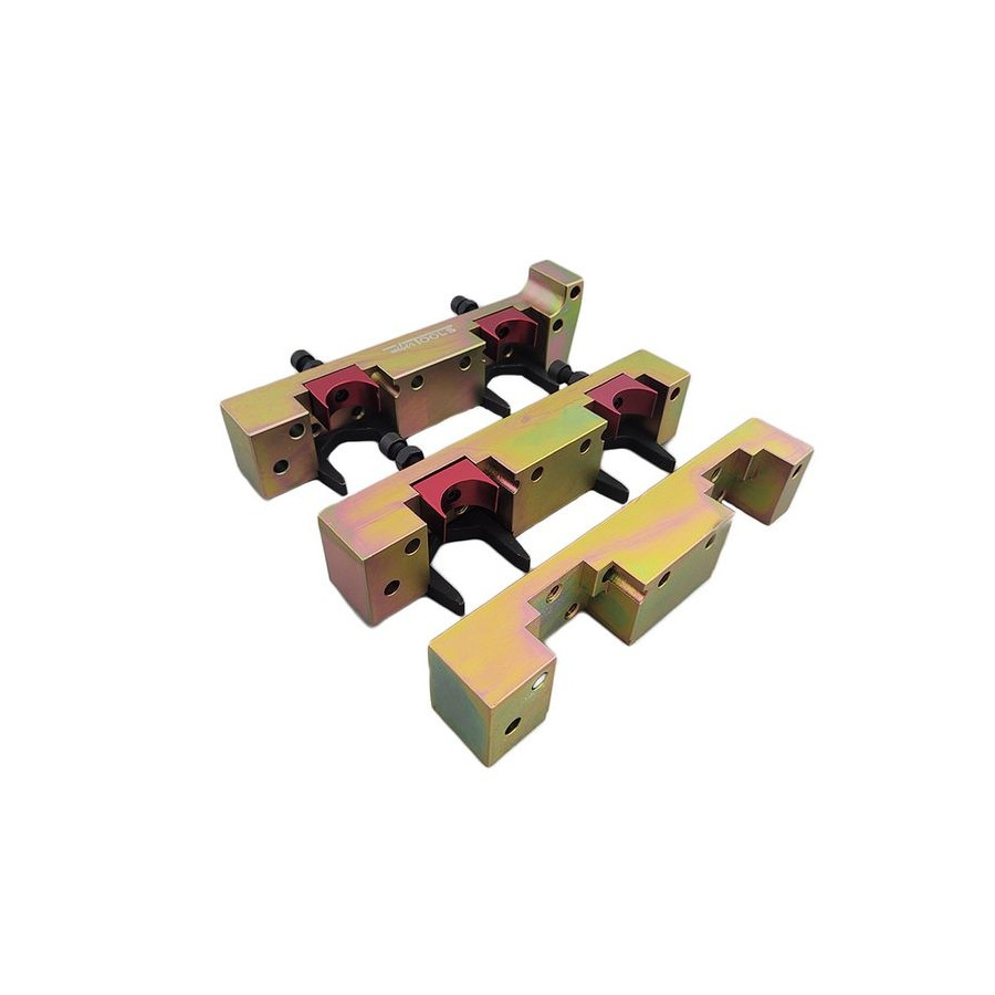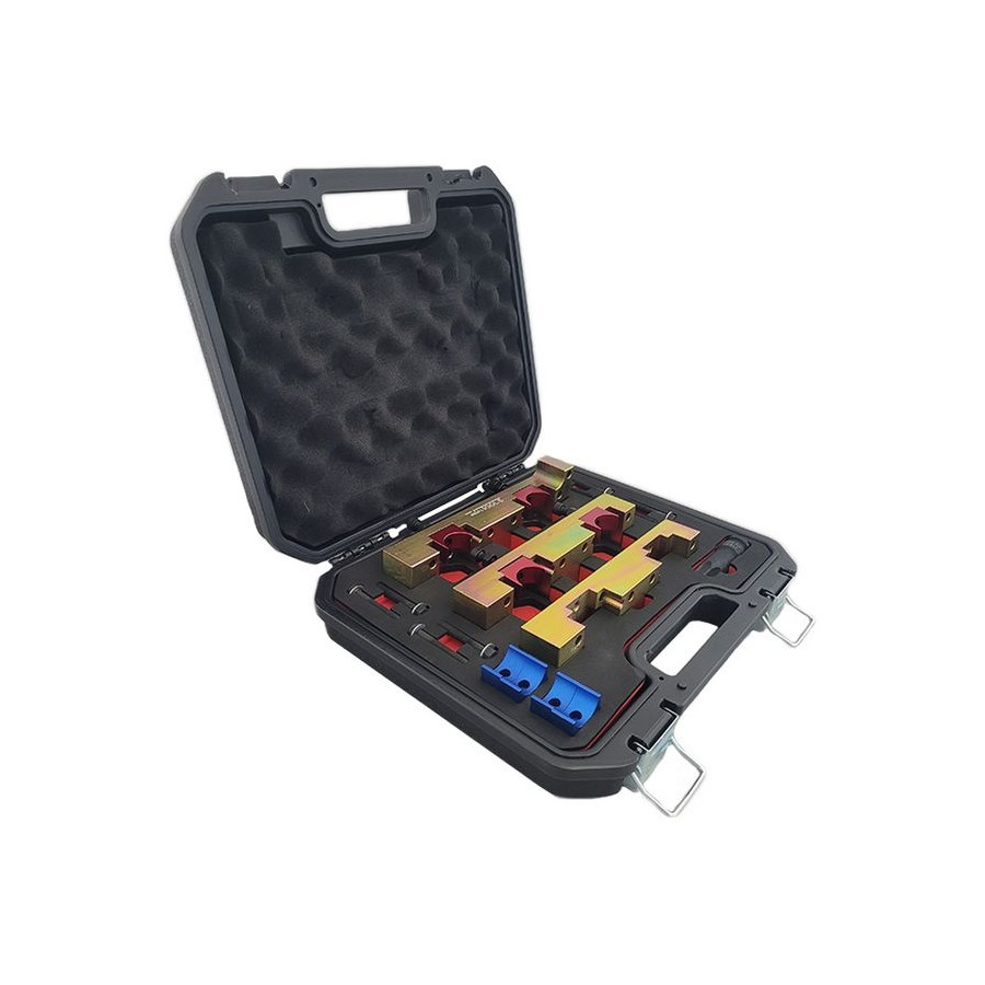 This kit has been developed for vehicles with 1.6/2.0 petrol engines with direct injection and timing chain. The latest vehicles of the A, B CLA, C and E-Class are equipped with these engines. These engines are constructed in such a way that the camshaft must be clamped in order to be able to dismantle and assemble the cylinder head.
