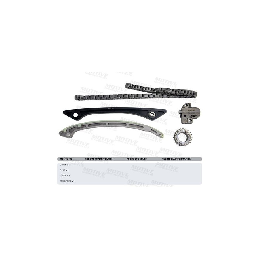 | Specification | 1 x Chain | 1 x Gear | 1 x tensioner | 2 x guide |
